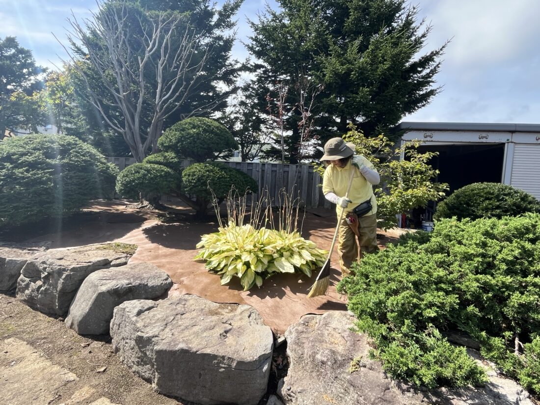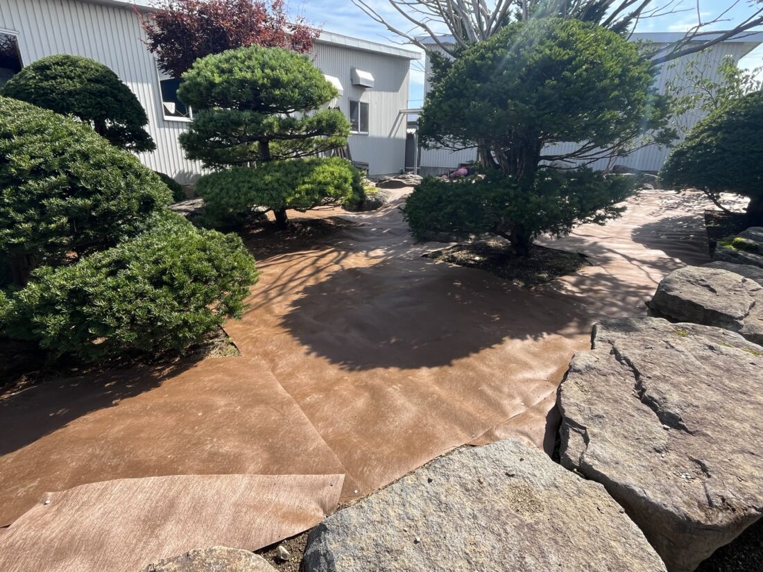 相方2人はコンビニもない街外れで防草シート張り…曇りの予報が雨模様😢でした