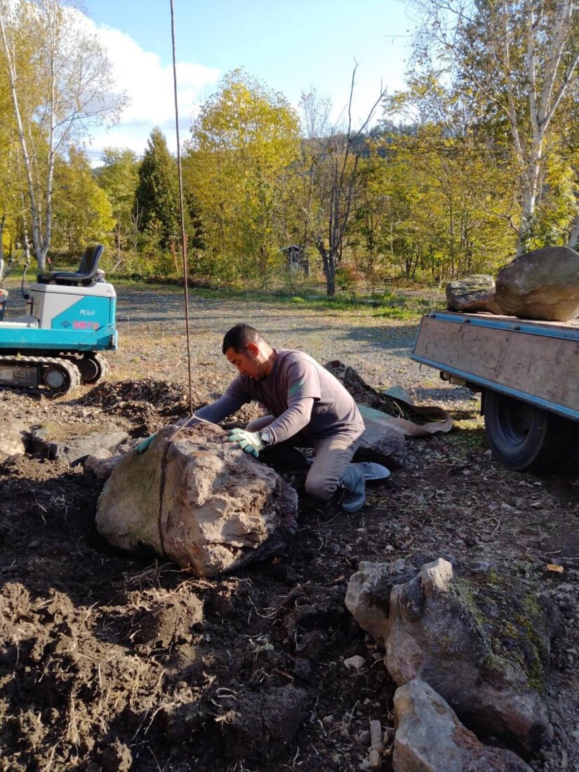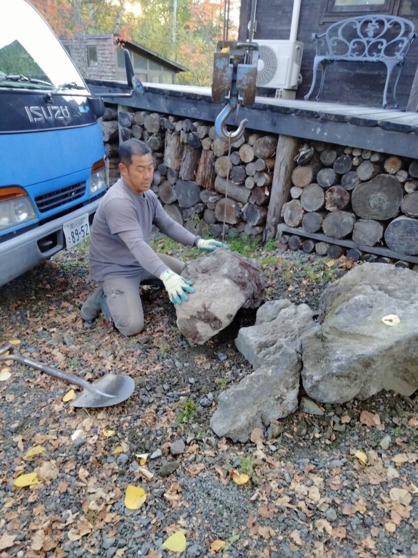 トラックに積まれた石を見てオーナー様
