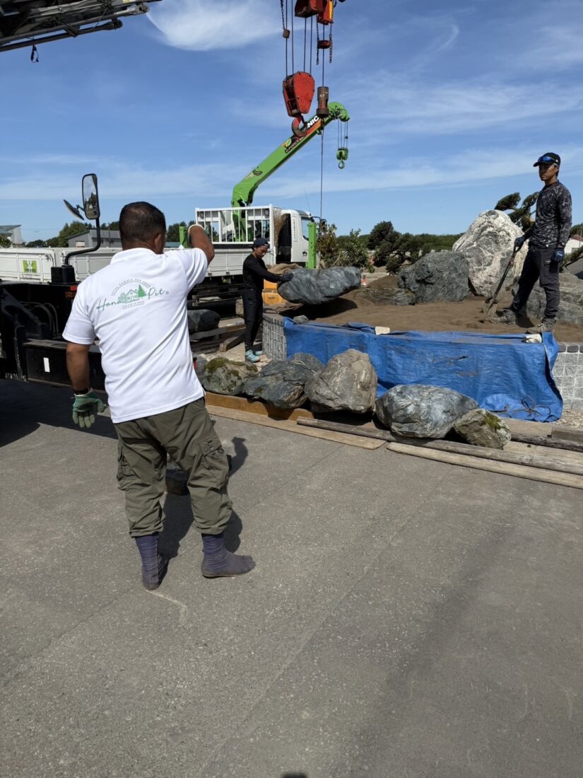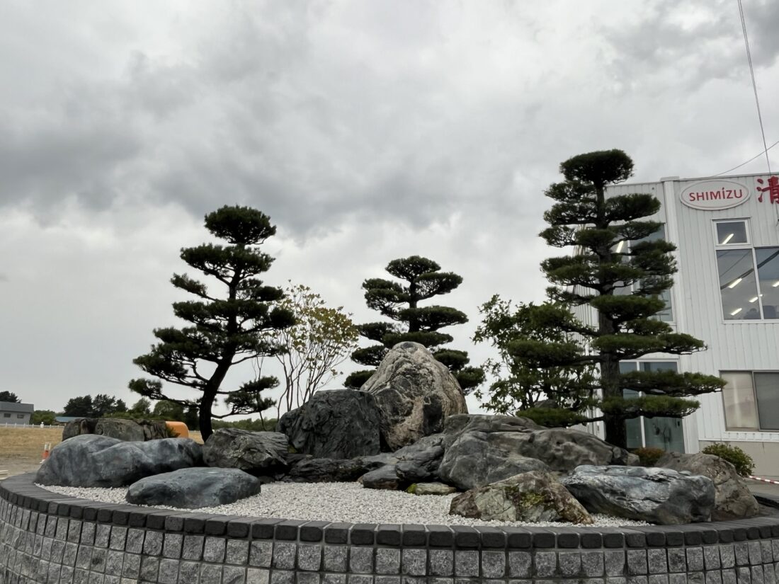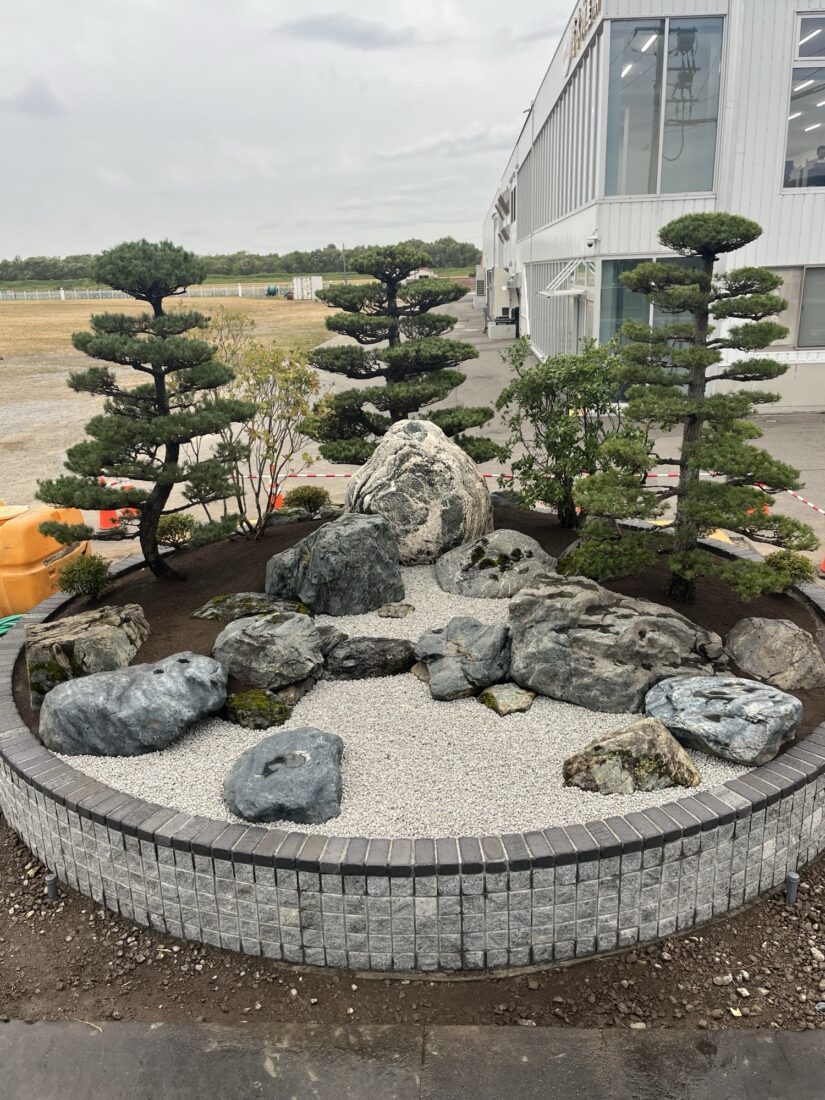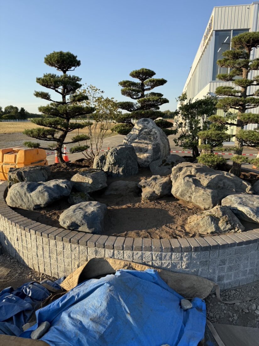 中国資本の会社の入り口に出来た大きなサークルの中に石を組み植栽するもので